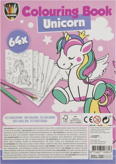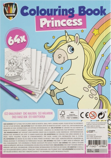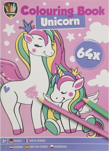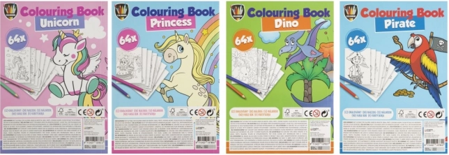 Malbuch A5 mit 64 kreativen Bildern bietet Spaß für Kinder. Themen wie Einhorn, Prinzessinnen, Dino und Piraten inspirieren kleine Künstler.