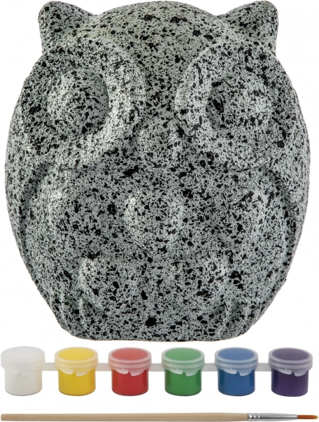 Stein in Eulenform, 6 Farben, 1 Pinsel