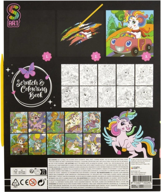Dieses kreative Set vereint zwei beliebte Aktivitäten in einem – Kratzen und Ausmalen. Kinder können zunächst leuchtende Motive freikratzen und anschließend die Ausmalbilder auf der Rückseite ausmalen. Dank des beiliegenden Kunststoffstifts ist die Arbeit einfach und sicher.