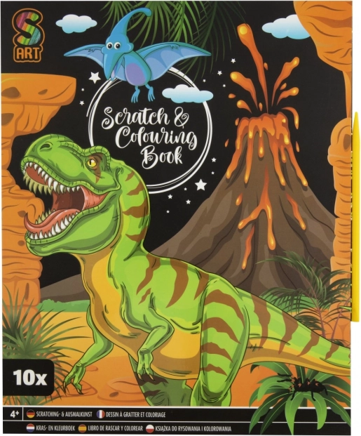 Das Set enthält 10 Bögen und einen Kunststoffstift zum Kratzen. Das Format 21 × 26 cm liegt auch kleinen Kindern gut in der Hand und ist ideal für zu Hause und unterwegs.