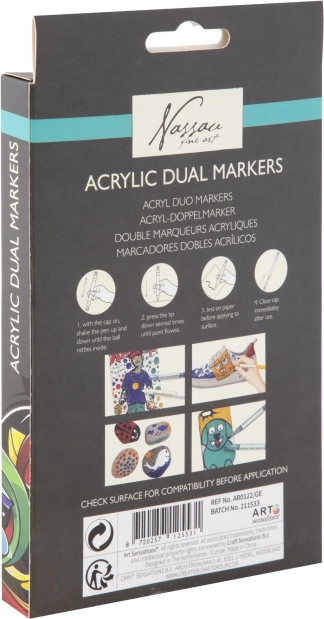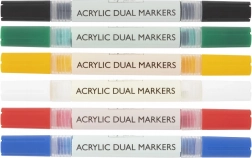 Dieses praktische Set aus Acryl-Dual-Markern bietet leuchtende, deckende Farbtöne und den Komfort von zwei Spitzen in jedem Stift. Damit gestalten Sie Beschriftungen, Illustrationen, Dekorationen und DIY-Projekte – vom Malen auf Papier und Karton bis zum Verzieren von Steinen, Holz oder Schuhen.