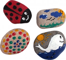 Steine, Papier, Holz oder Wohn-Deko – die Acrylfarbe deckt und leuchtet auch auf dunkleren Untergründen. Reinigen Sie die Oberfläche vor dem Auftragen und machen Sie eine Probe.
