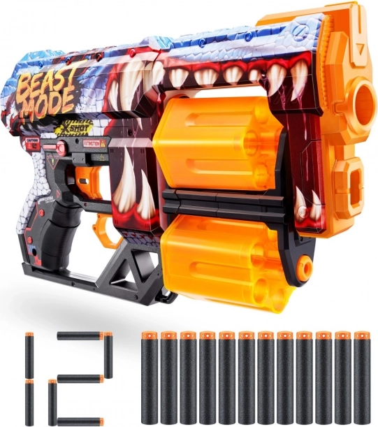 Mach dich bereit für adrenalingeladene Duelle mit dem Blaster X-SHOT SKINS DREAD im auffälligen Beast-Mode-Skin. Zwei unabhängige, rotierende Trommeln ermöglichen insgesamt 12 schnelle Schüsse – ist eine leer, genügt ein Umschalten, und die Action geht ohne Unterbrechung weiter. Das ergonomische Design und die leichte Bauweise sorgen für angenehmen Halt auch bei längerem Spielen.
