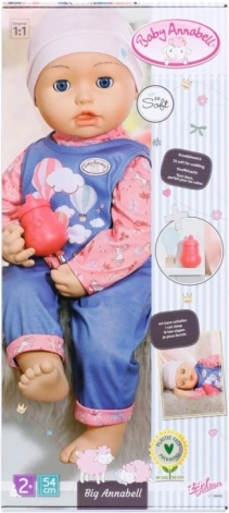 Die große BABY ANNABELL Puppe mit 54 cm ist für realistische und liebevolle Pflege entwickelt. Dank des weichen Körpers ist sie wunderbar zum Kuscheln, leicht zu tragen und fördert beim Rollenspiel die Entwicklung von Empathie und Verantwortungsbewusstsein. Beim Hinlegen schließt sie die Augen wie ein echtes Baby.