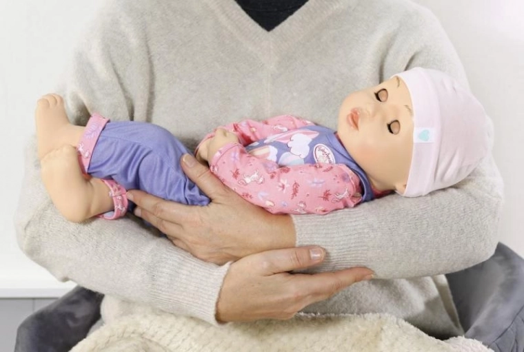 Ideal zum Kuscheln und Einschlafen – lege die Puppe ins Bettchen und sie schließt die Augen wie ein echtes Baby.