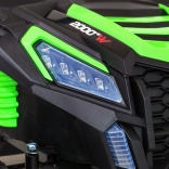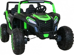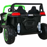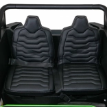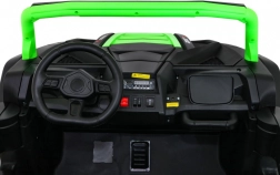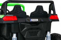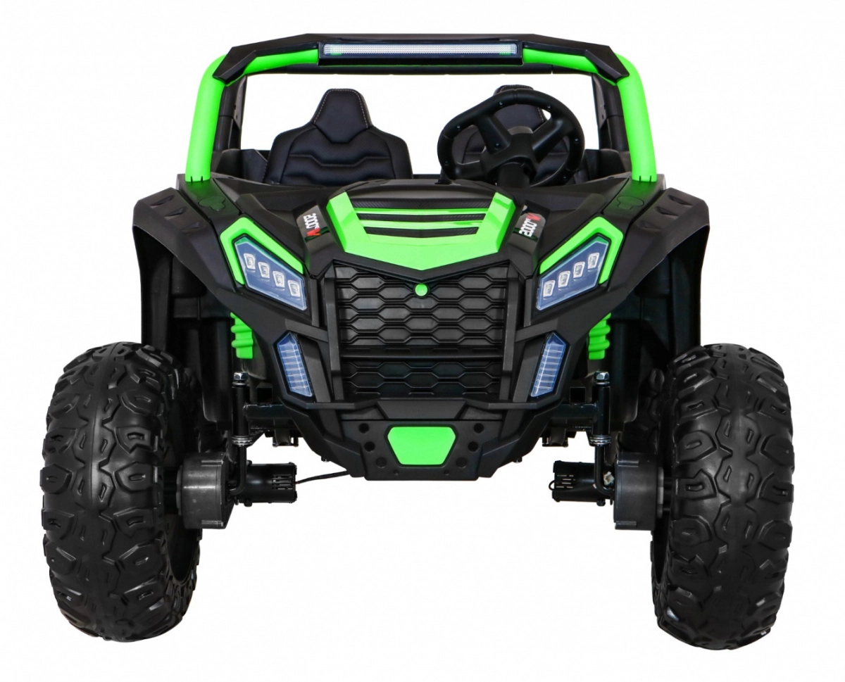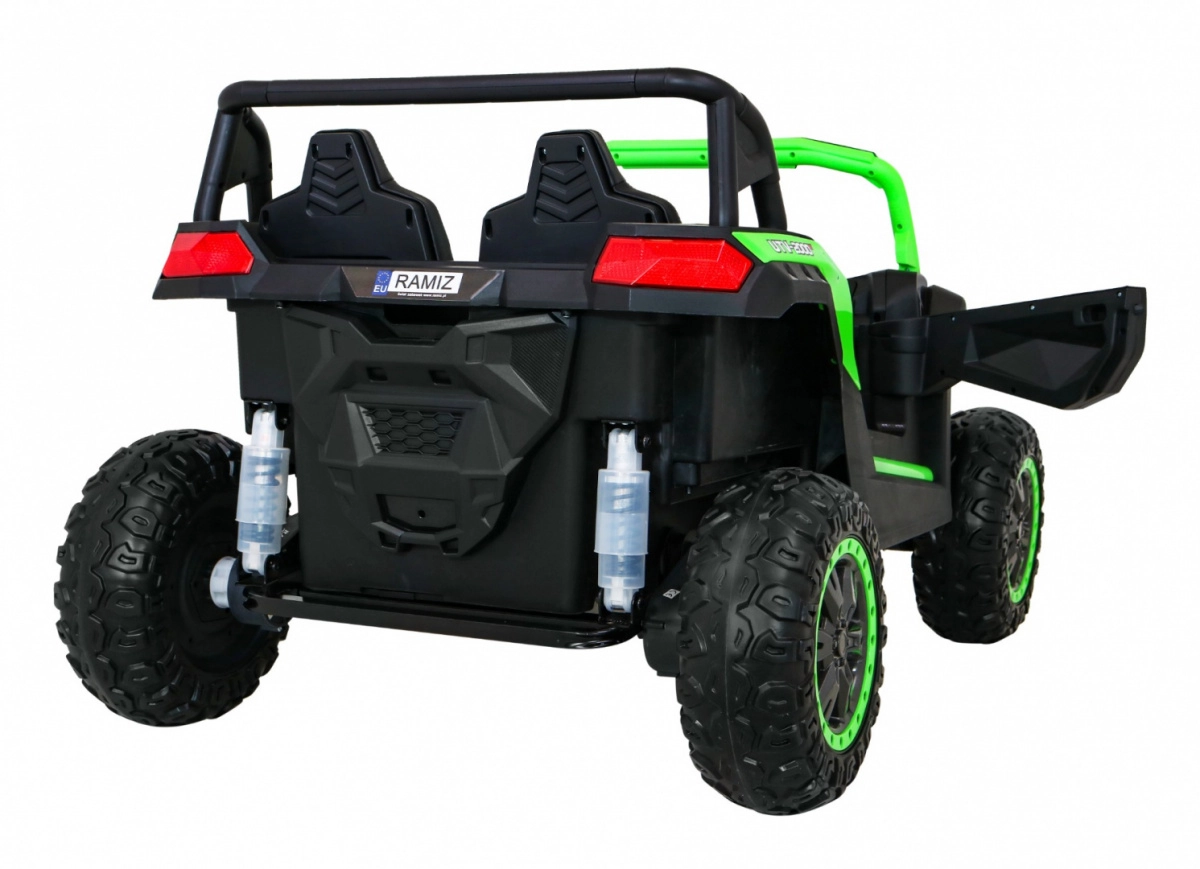 Dieses robuste elektrische Buggy ist ideal für Geschwister oder Freunde. Zwei bequeme Sitze aus perforiertem Eko-Leder, dreistufige Sitzverschiebung und Sicherheitsgurte sorgen für Komfort und Sicherheit. Dank der gummierten EVA-Räder 35×15 cm, hinteren Stoßdämpfer und 23 cm Bodenfreiheit genießen Kinder eine ruhige Fahrt auch abseits befestigter Wege.
