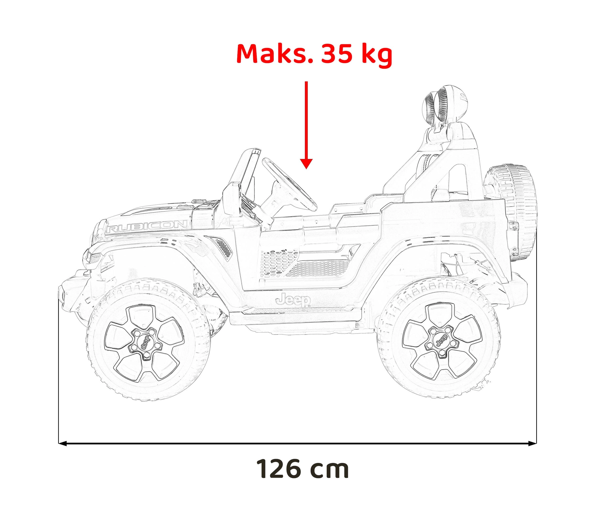 LED‑Scheinwerfer vorne und am Rahmen, große EVA‑Geländeräder und JEEP‑Details verleihen dem Auto authentischen Offroad‑Stil und gute Sichtbarkeit.