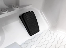 - Sitz aus Ökoleder, Sicherheitsgurt, öffnende Türen