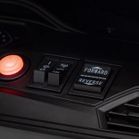 Das integrierte Audio-Panel bietet USB, Bluetooth, AUX, MP3-Wiedergabe sowie vorinstallierte Melodien. Am Lenkrad befindet sich eine Hupe. Den Akkustand prüfen Sie bequem über den Ladeindikator, gestartet wird über eine beleuchtete Taste.