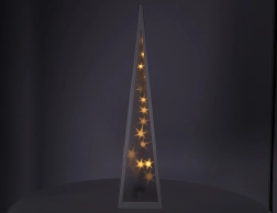 Plastpyramide mit weißem Metallrahmen, ausgefüllt mit Sternen, die sich in der Mitte der Pyramide bewegen ✨