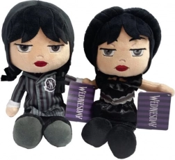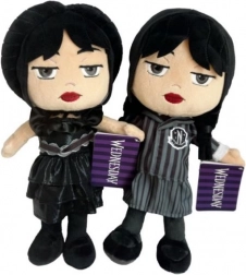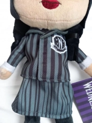 Entdecken Sie den Charme des beliebten Serienhelden mit unserer stilvollen Plüschpuppe Wednesday Addams. Diese 32 cm große Puppe ist detailreich in zwei ikonische Outfits gestaltet: graue Schuluniform von Nevermore und extravagante schwarze Kleider, die sie beim Nevermore Rave'N Dance trug.
