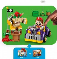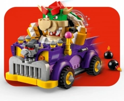 Begib dich auf eine ungebremste Fahrt mit Bowsers Muscle Car und erlebe Kämpfe und kreatives Spielen. Ziehe am gelben Hebel und sieh zu, wie sich die Verzierung auf der Motorhaube bewegt oder andere Stunts ausgelöst werden. Setze BOWSER ans Steuer und verbinde das Set mit einem Starterset, um Hupgeräusche, einen dröhnenden Motor und quietschende Reifen zu genießen.