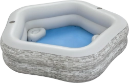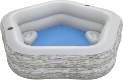Genießen Sie sommerliche Entspannung mit dem aufblasbaren Eckpool BESTWAY in den Maßen 213 × 206 × 53 cm. Er bietet schnelles Auf- und Ablassen der Luft, eine stabile Konstruktion mit zwei Luftkammern, breite, weiche Wände zum bequemen Anlehnen, integrierte aufblasbare Rückenlehnen mit Kissen und Getränkehalter. Eine großartige Wahl für die Familienentspannung im Garten.