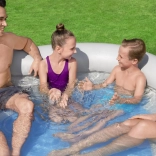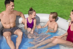 Durchdachte Details wie zwei Getränkehalter und zwei aufblasbare Kissen erhöhen den Komfort beim Entspannen. Stabilität bieten zwei gleichmäßige Ringe, die die Form halten und für Sicherheit bei der Nutzung sorgen. Das Volumen von ca. 575 l ist ideal zur Erfrischung für Kinder und Erwachsene.