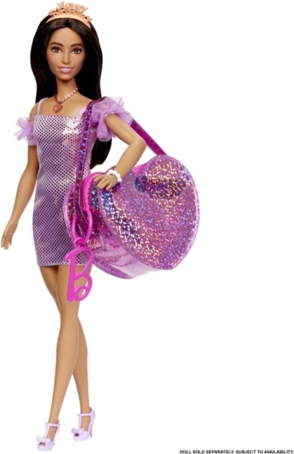 Die attraktive Tasche besticht durch glänzendes Material und Aufkleberdetails und verleiht Barbie unterwegs einen außergewöhnlichen Look.