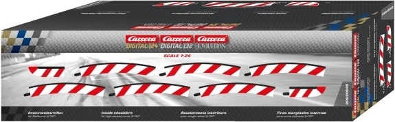 Praktisches Set innerer Randstreifen für die überhöhte Kurve 3/30° erweitert Ihre CARRERA Rennbahn und sorgt für einen flüssigeren und sichereren Durchfahrtsbereich. Enthält 6 Randstreifen, kompatibel mit den Systemen Evolution, Digital 132 und Digital 124 und mit dem R3-Radius.