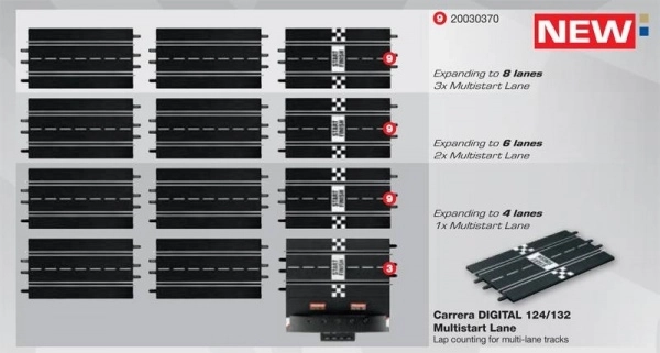 Diese Erweiterung ist für CARRERA DIGITAL 132 und DIGITAL 124 Autorennbahnen konzipiert, die mehr als zwei Spuren haben. Durch das Hinzufügen von Modulen erhalten Sie eine zuverlässige Rundenzählung für 4, 6 oder 8 Spuren sowie eine Übersicht über den Rennverlauf in Echtzeit.
