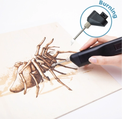 Geeignet zum Dekorieren von Holzobjekten, Lederaccessoires oder zur Personalisierung von Geschenken. Die stabile Leistung und die Kompatibilität mit dem Multipro-System ermöglichen Ihnen ein schnelles Umschalten zwischen 3D-Zeichnen, Schneiden, Löten und Brennen.