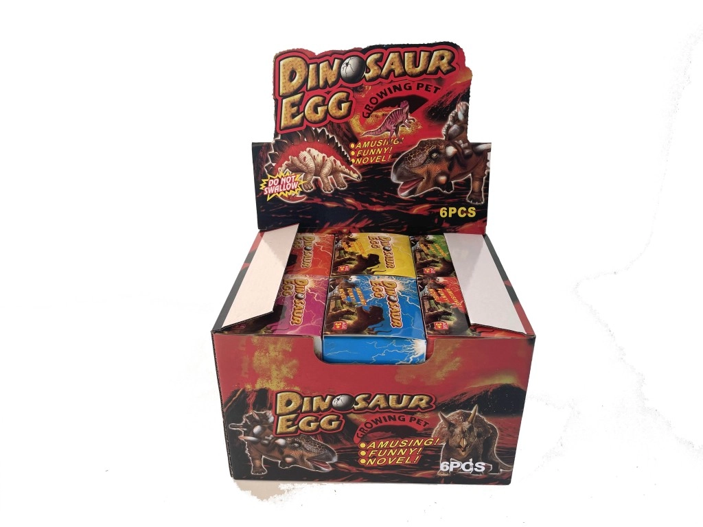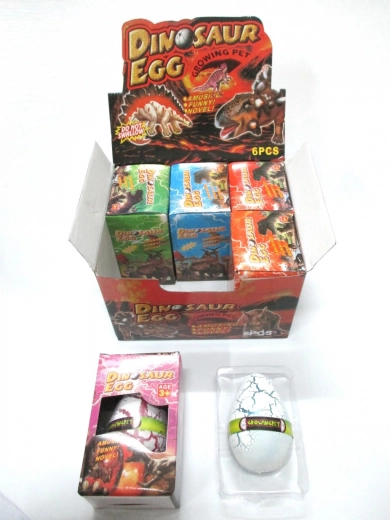 Im Ei verbirgt sich eine Überraschung in Form eines Dinosauriers. Damit er schlüpfen kann, muss das Ei in eine Schale mit lauwarmem Wasser gelegt werden. Nach etwa 24–48 Stunden beginnt die Schale zu reißen und der Dinosaurier fängt an zu schlüpfen. Kinder können so nach und nach beobachten, wie der Dinosaurier aus dem Ei schlüpft.
