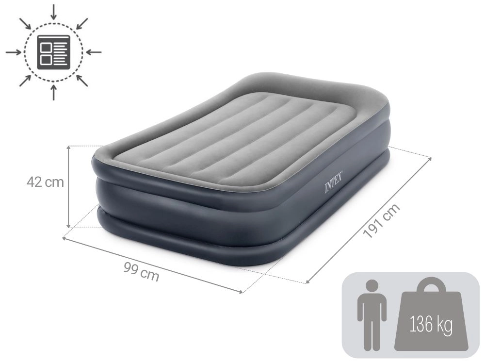 Aufblasbares Einzelbett 191 × 99 × 42 cm mit integrierter Elektropumpe INTEX