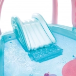 Die integrierte Rutsche führt direkt in das Becken und fördert Bewegung sowie die Freude an Wasserspielen.