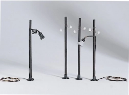 Die Leuchte besteht aus einer Kombination aus Holz und Kunststoff, was eine solide Konstruktion und ein realistisches Aussehen sicherstellt. Die Installation ist einfach und geeignet für fortgeschrittene Modellbauer. Das Produkt ist für den Hobbygebrauch vorgesehen und ideal zur Ergänzung von Bahnsteigen, Stadtstraßen oder Industriegebieten.