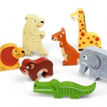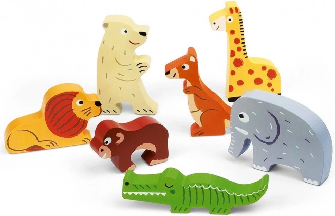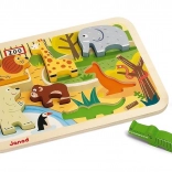 Dieses wunderschön illustrierte Holzpuzzle bringt Kindern Freude am Entdecken und Lernen. Sieben Zootiere – zum Beispiel Elefant, Löwe oder Krokodil – haben auf der Unterlage farblich passende Bereiche, was Kindern hilft, die Beziehung zwischen Form und Farbe leichter zu verstehen.