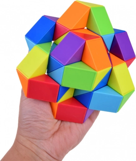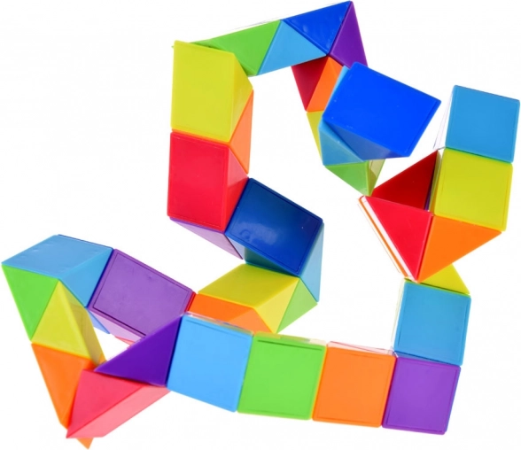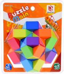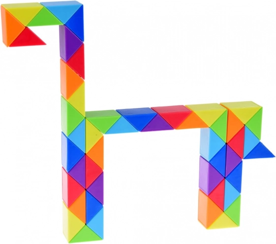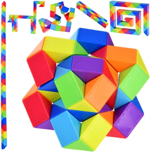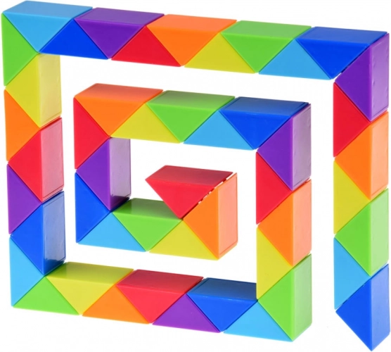 Dieses bunte Puzzle vom Typ Magic Snake besteht aus dreieckigen Segmenten, die sich beliebig drehen lassen und so unze4hlige Formen ermf6glichen. Beginnen Sie mit einfachen Objekten und wagen Sie sich nach und nach an komplexere Gebilde – der Fantasie sind keine Grenzen gesetzt.