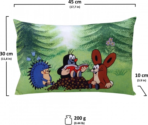 Weiches Kissen mit dem Motiv des beliebten kleinen Maulwurfs. Geeignet für das Bettchen, auf Reisen oder als Dekoration im Kinderzimmer.