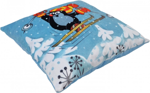 Das Kissen ist aus Mikrovelours gefertigt, was seine Weichheit und Bequemlichkeit garantiert. Auf der Vorderseite befindet sich ein Druck des Maulwurfs, der immer ein beliebter Held der Kinder ist. Die Rückseite ist in hellem Blau gehalten, was jedes Kinderzimmer wunderbar ergänzt.