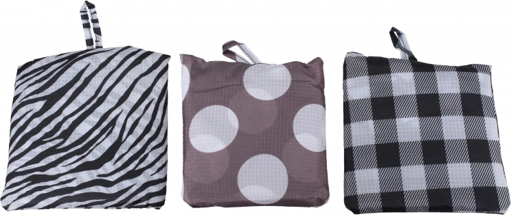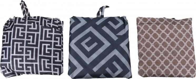 Praktische faltbare Stofftasche mit den Maßen 54x72 cm, ideal für den täglichen Gebrauch. Verschiedene bunte Muster.