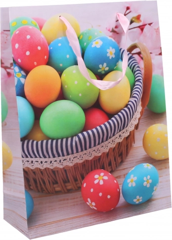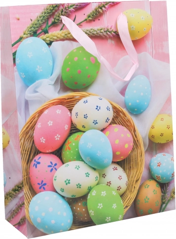 Elegante Geschenktasche für Ostern in der Größe M 26x32x10 cm, ideal für das schöne und sichere Verpacken Ihrer Ostergeschenke.