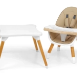 Veränderbare Konfiguration von einem Hochstuhl zu einem Set für Kinder inklusive Tisch und Stuhl.