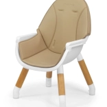 Der Stuhl kann dank der verstellbaren Fünfpunkt-Sicherheitsgurte an das Alter und die Größe des Kindes angepasst werden. Er ist auch mit weichen Schultergurten ausgestattet, die vor Abrieb schützen, und die Bezug aus Kunstleder ist widerstandsfähig gegen Verschmutzung. Das Tablett mit Vertiefung verhindert das Herunterrutschen von Gegenständen.