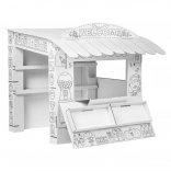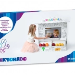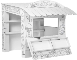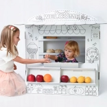 Tauchen Sie Ihre Kinder in die Spielwelt mit diesem Kartonspielstand ein. Sein Design erinnert an einen kleinen Laden, in dem Kinder ihre sozialen Fähigkeiten und Kreativität entwickeln können:
