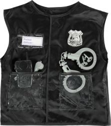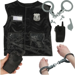 Kinder-Polizeikostüm ist das ideale Zubehör für kleine Ordnungshüter und Rollenspiel-Enthusiasten. Das Set enthält eine schwarze Polizeiweste, Handschellen mit Schlüsseln und ein Kurzwellengerät für realistische Spielerlebnisse.