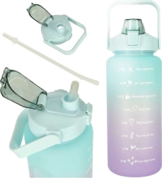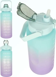 Die großvolumige Flasche mit 2 Litern Fassungsvermögen ist für die ganztägige Hydration konzipiert. Auf dem Flaschenkörper befinden sich Zeitmarkierungen, die zu regelmäßigem Trinken motivieren, und dank des klappbaren Mundstücks mit Trinkhalm ist Trinken ohne Kippen bequem möglich.
