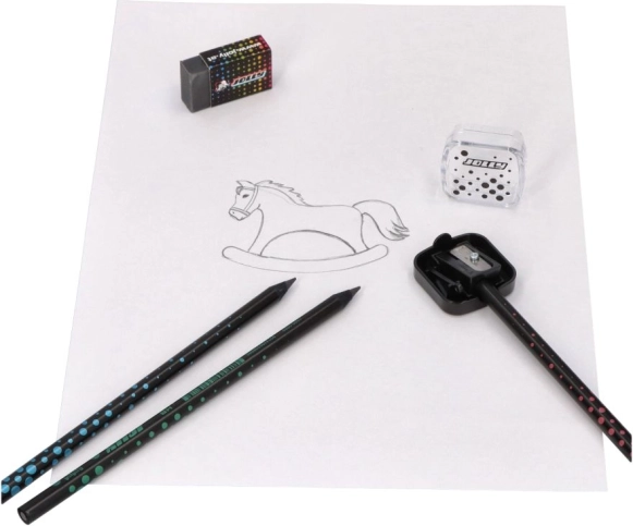 Dieses großartige Set aus Bleistiften, Radiergummi und Anspitzer von der Marke Jolly Next Gen ist ideal für Schüler und Künstler. Dank des ergonomischen Designs liegt es hervorragend in der Hand und sorgt für komfortables Zeichnen über viele Stunden.