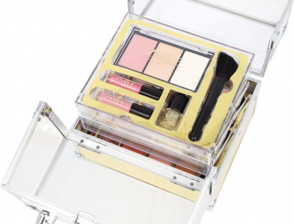 Entdecken Sie den vielseitigen Kosmetikkoffer GLAM im goldenen Acryl-Design, der eine reichhaltige Palette an Nuancen für Augen, Lippen und Körper bietet. Dank der durchdachten Aufteilung und praktischen Applikatoren zaubern Sie mühelos ein natürliches Tages-Make-up ebenso wie einen ausdrucksstarken Abend-Look.
