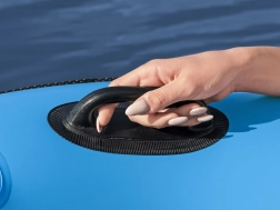 Zwei feste Griffe und eine Schnur um den gesamten Sessel erleichtern das Einsteigen und bieten eine weichere und sicherere Handhabung.