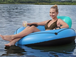 Aufblasbarer Sessel von Bestway ist ideal für Entspannung auf dem Wasser. Er ist aus robustem PVC hergestellt und bietet eine bequeme Rückenlehne, einen Netzboden für mehr Sitzkomfort und einen Getränkehalter.