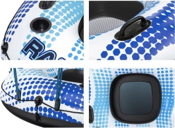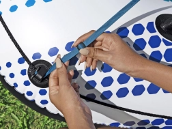 Für eine sichere und einfache Nutzung ist der Ring mit einem Sicherheitsventil gegen Luftverlust sowie mit dem cleveren CLASP 'N GO System zur Verbindung mit einem weiteren Ring ausgestattet. Im Lieferumfang ist zudem ein Reparaturflicken für unerwartete kleine Beschädigungen enthalten.