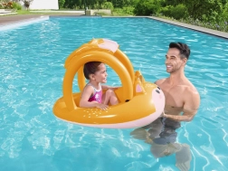Das Boot ist mit einem aufblasbaren Boden für maximalen Komfort und einem durchsichtigen Peek-a-Boo-Fenster ausgestattet, das es Kindern ermöglicht, unter die Wasseroberfläche zu blicken. Das abnehmbare Dach bietet Sonnenschutz.