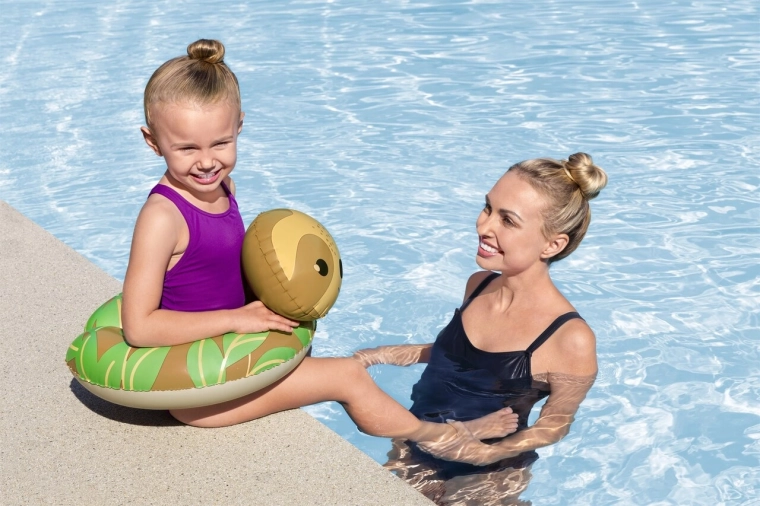 Niedlicher aufblasbarer Schwimmring im Stil eines Faultiers der Marke Bestway begeistert kleine Schwimmer im Alter von 3–6 Jahren. Er verfügt über ein Sicherheitsventil, besteht aus robustem, getestetem Vinyl und lässt sich dank des offenen Rings leicht an- und ausziehen. Ein großartiger Begleiter für Spaß und Sicherheit im Wasser.