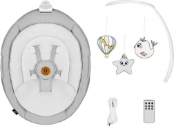 Die Wippe bietet 6 Bewegungsmodi und einen automatischen Sensor, der Schaukeln und Musik aktiviert. Kann über das Touchpanel oder die mitgelieferte Fernbedienung gesteuert werden.