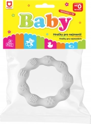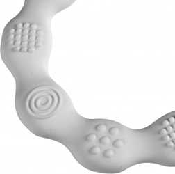 Praktischer Silikon-Beißring in Kreisform in Weiß hilft, gereiztes Zahnfleisch während des Zahnens zu beruhigen. Dank der ergonomischen Form kann das Kind ihn leicht greifen und die erhabenen Strukturen auf der Oberfläche bieten eine sanfte Zahnfleischmassage und sensorische Stimulation.