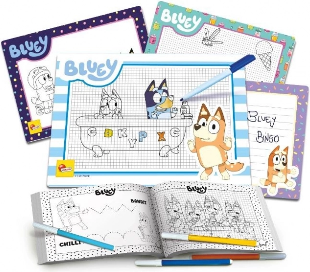 Zeichenschule BLUEY – Kreativset mit Arbeitsheft und 4 abwischbaren Tafeln