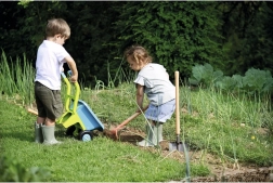 Das Spielen mit der Schubkarre und den Werkzeugen unterstützt die Feinmotorik, was für die Entwicklung der Kinder entscheidend ist.
