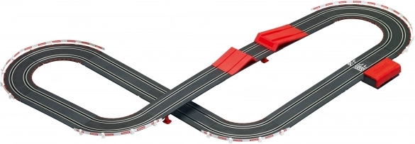 Acht in Form einer Acht mit Überführung, Sprungschanze und Sicherheitsleitplanken sorgt für dynamische Rennen und flüssige Kurvenfahrten.