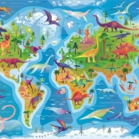 Eine farbenfrohe Illustration der prähistorischen Welt mit Dinosauriern auf den Kontinenten unterstützt spielerisches Lernen und fördert die kindliche Neugier.